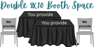 This is an 8x10 space. You provide: two 6 or 8ft. table, a floor-length black skirt or tablecloth (required by venue). We'll provide two chairs.